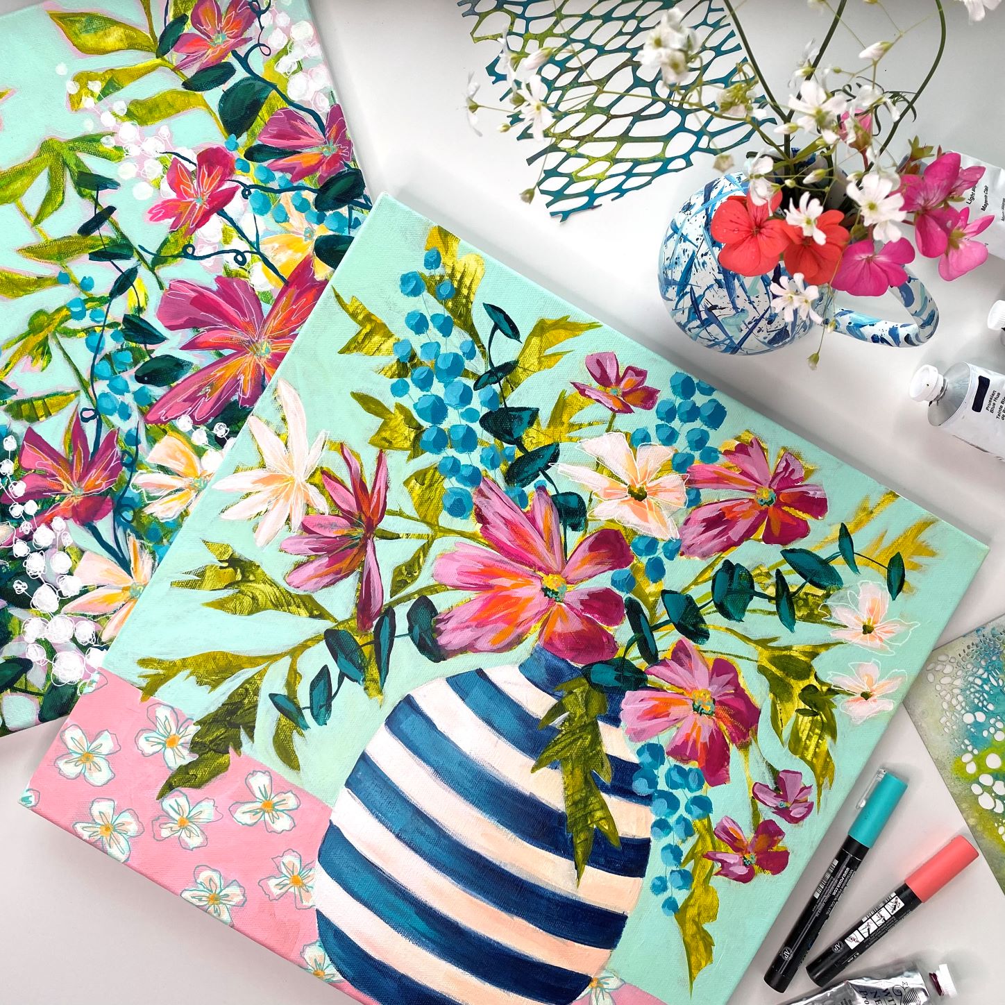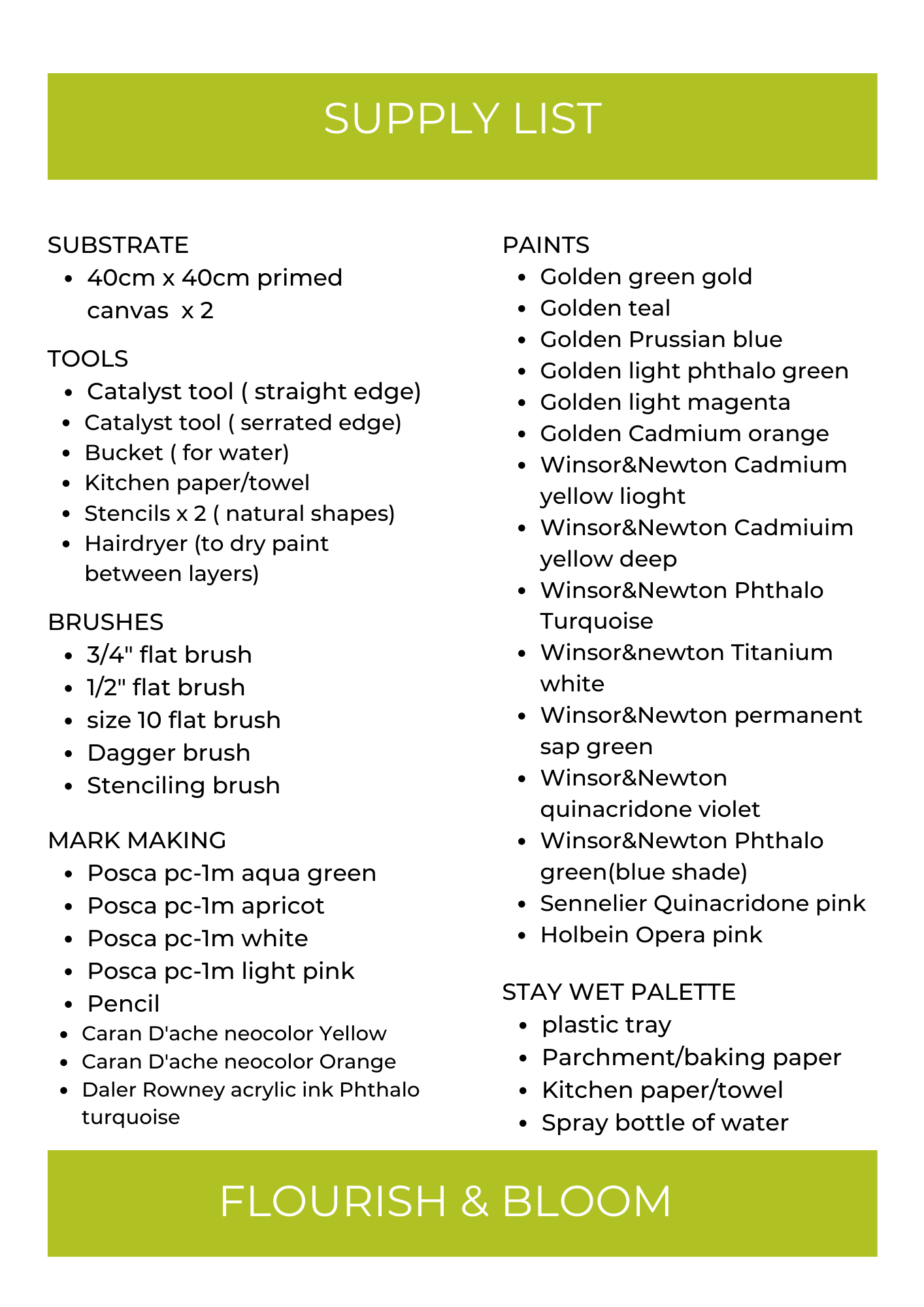 While we provide comprehensive supply lists, you're welcome to use substitutions. All suggested materials are readily available from art suppliers, but you're responsible for purchasing your own supplies and following proper safety guidelines.