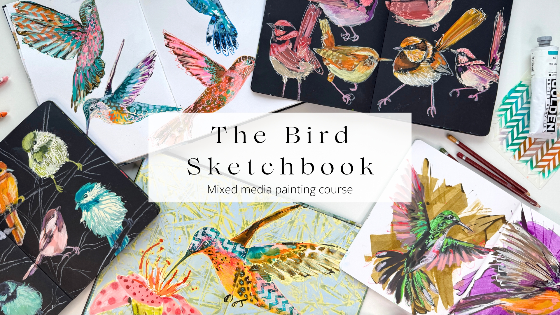 In The Bird Sketchbook, we use birds as our inspiration as we fill our pages with expressive mixed media, mark making, and creative energy. I love sharing the techniques that have helped me build my own practice, so you can grow in confidence and develop your own joyful, expressive style.